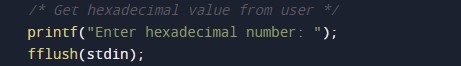 /* C Program to Convert Hexadecimal to DECIMAL */ #include <stdio.h> #include <math.h> #include <string.h> #define ARRAY_SIZE 20 int main() { /* Declaring the variables for the program */ char hex[ARRAY_SIZE]; long long decimal = 0, base = 1; int i = 0, value, length; /* Get hexadecimal value from user */ printf("Enter hexadecimal number: "); fflush(stdin); fgets(hex,ARRAY_SIZE,stdin); length = strlen(hex); /* Converting the Hexa decimal to the decimal */ for(i = length--; i >= 0; i--) { if(hex[i] >= '0' && hex[i] <= '9') { decimal += (hex[i] - 48) * base; base *= 16; } else if(hex[i] >= 'A' && hex[i] <= 'F') { decimal += (hex[i] - 55) * base; base *= 16; } else if(hex[i] >= 'a' && hex[i] <= 'f') { decimal += (hex[i] - 87) * base; base *= 16; } } //PRINTING THE HEXADECIMAL NUMBER TO THE USER printf("\nHexadecimal number = %s", hex); //PRINTING THE DECIMAL NUMBER TO THE USER printf("Decimal number = %lld\n", decimal); return 0; } |
