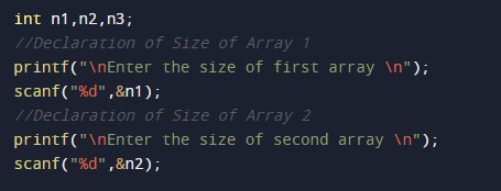 - n2 = it will hold the number of elements of array2.