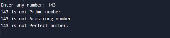 Program For checking the Number is a Prime, Armstrong, or Perfect Number:-