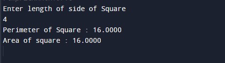 With the help of this program, we can find the Area & Perimeter of the Square.