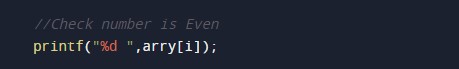 1. Declaring the variables for the program. 2. Taking the input number from the user. 3. Storing in array. 4. Calculating the <strong>Even </strong>numbers from the array. 5. Printing the result numbers. |