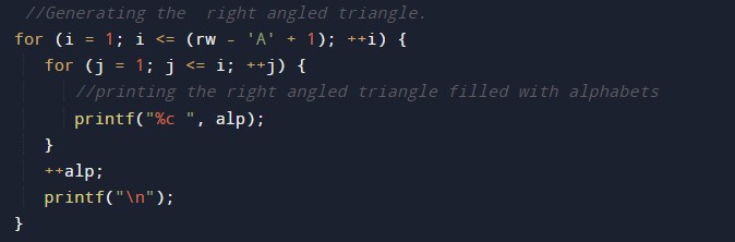 In this tutorial, we will learn to create a C program that will print the Triangle Alphabets Pattern in C programming