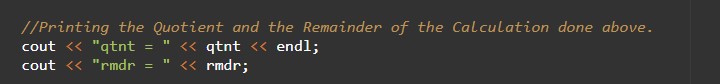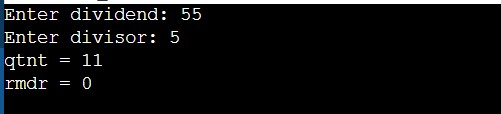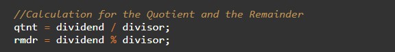 With the help of this program, we can take input and Find Quotient and Remainder.