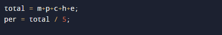 then we add all 5 given value in variable total ( total =m+p+c+h+e ).