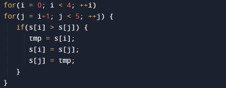 #include <iostream> using namespace std; int main() { int i,j; string s[5], tmp; // declaring variables. cout<<"Enter 5 elements..."<<endl; for(i = 0; i < 5; ++i) cin>>s[i]; // getting 5 elements. for(i = 0; i < 4; ++i) for(j = i+1; j < 5; ++j) { if(s[i] > s[j]) { tmp = s[i]; // arranging them in Lexicographical order. s[i] = s[j]; s[j] = tmp; } } cout << "The elements in lexicographical order are... " << endl; for(int i = 0; i < 5; ++i) cout << s[i] << endl; // printing in Lexicographical order. return 0; } |