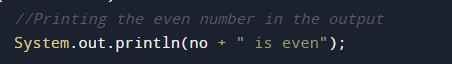 In this program, First, we will take an input number from the user. And then we will use it in the program with conditional statements to find whether the number is even or odd. At last, we will print the output number as even or odd.