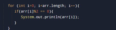 // java program to find even odd in a n array[] public class OddevenArray { public static void main(String args[]){ // declaring variables int[] arr = {2, 3, 4, 5, 6}; System.out.println(" Even numbers in the given array are:: "); // Finding even in a an array for (int i=0; i<arr.length; i++){ if(arr[i]%2 == 0){ System.out.println(arr[i]); } } System.out.println("Odd numbers in the given array are:: "); // Finding odd in an array[] for (int i=0; i<arr.length; i++){ if(arr[i]%2 != 0){ System.out.println(arr[i]); } } } } |
