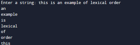 In our program above we going to sort entered list of word in “Alphabetical” order. within the program first we break string in to word and with “sort” function sort the word in Lexicographic order.