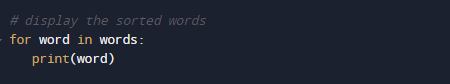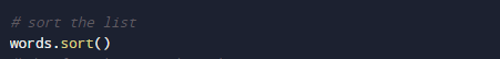 So the elements of List(words) will be sorted using the “sort()” in-built method As show in image above and all the words are display as shown in here.